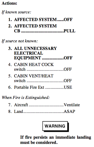 ELECTRICAL FIRE / AIRFRAME FIRE