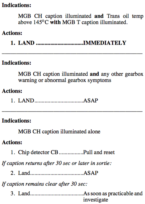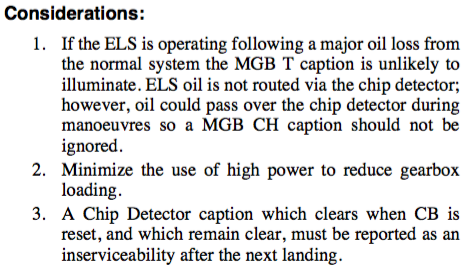 MAIN GEARBOX CHIP WARNINGS