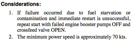 If a flameout is quickly recognized an immediate restart may be attempted if single engine performance is critical.