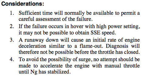 If engine failure was caused by OTG operation due to overspeed, restart should be done in manual control.