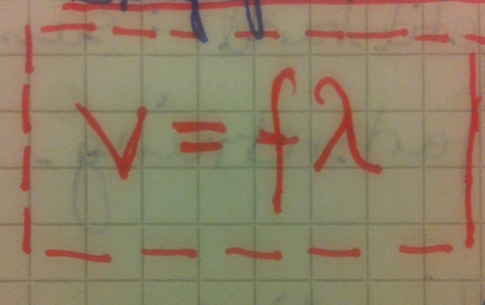For bølger med frekvensen f og bølgelengden h, er bølgefarten v gitt ved: