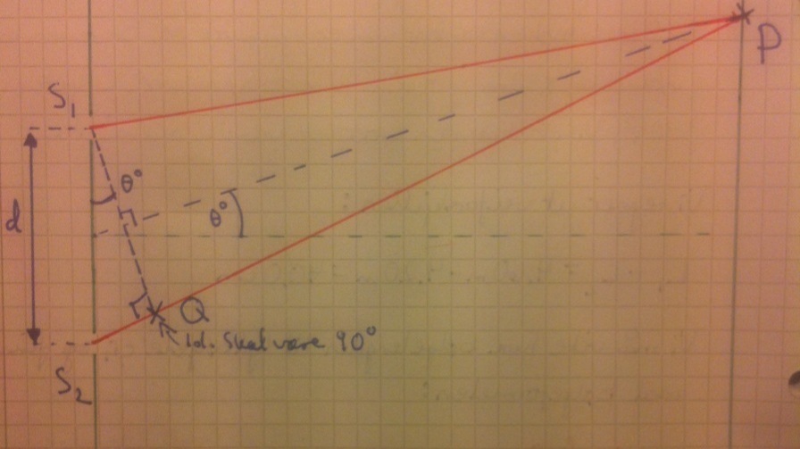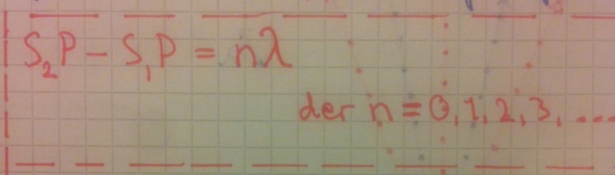 Vi får maksimal forsterkning når veiforskjellen (S2P - S1P) er et helt antall bølgelengder