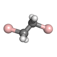 What is the shape of the atoms arranged directly around either of the carbon atoms in 1,2-dibromoethane (BrH2C-CBrH2)?