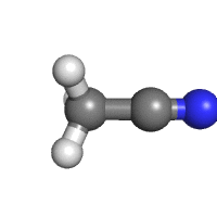What is the shape of the atoms arranged around the central carbon atom in acetonitrile, also known as cyanomethane (CH3C≡N)?