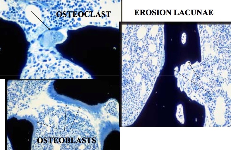 osteoclasts - multinucleated cells - originate from blood monocytes - resorption of bone matrix