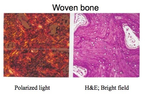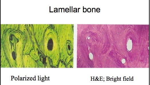 black is minearlized bone, blue is unmineralized