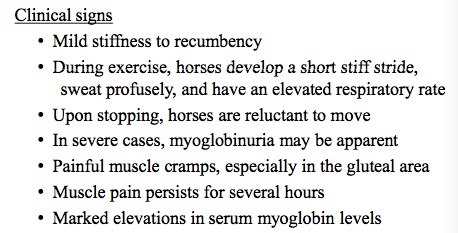 1. occurs following exercise in horses with previous history of what?