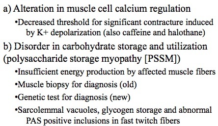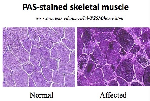 Disorder in carbohydrate storage and utilization (polysaccharide storage myopathy [PSSM])