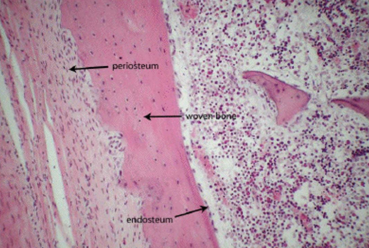 Osteoblasts trapped in Lacunae within Osteoid Matrix
