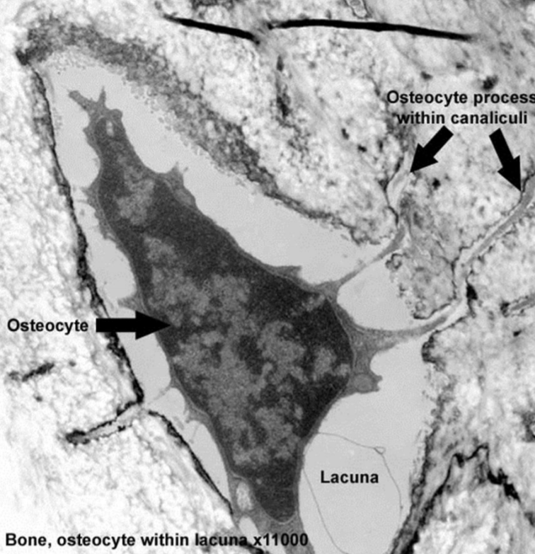 Highly branched cells create complicated communicating network (Lacunae –> Canaliculi –> Connection of Osteocytes)