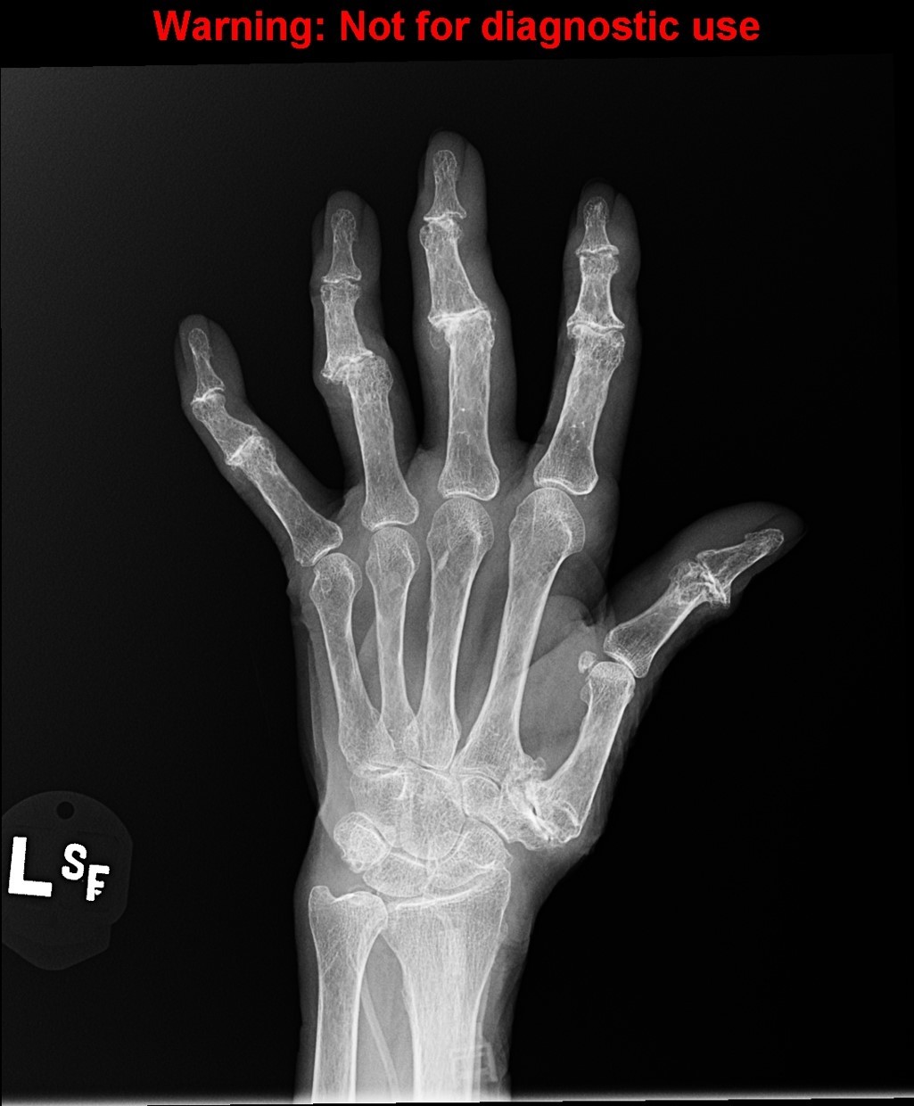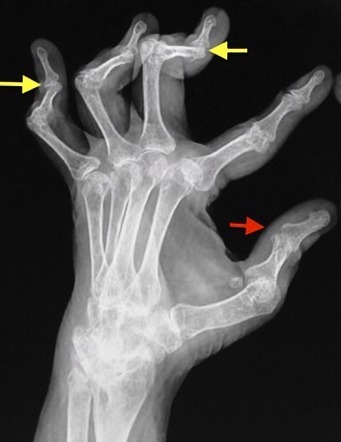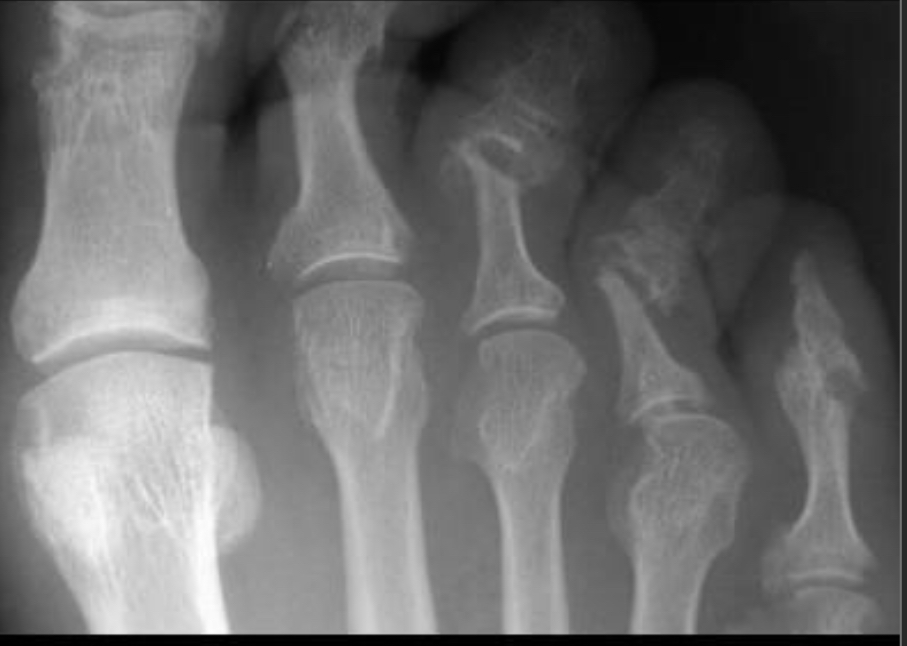 erosions in the metatarsophalangeal (MTP) and interphalangeal (IP) joints is nonspecific.