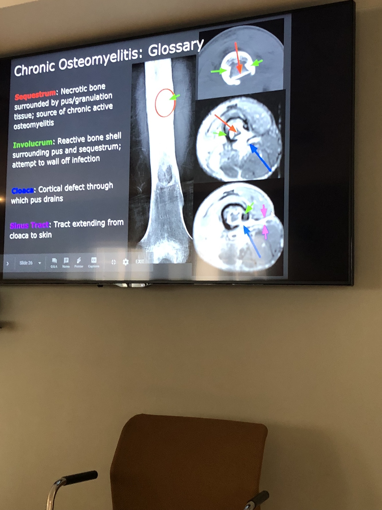 The diffuse sclerosis surrounding the lytic lesions represents typical host reaction to the infection.