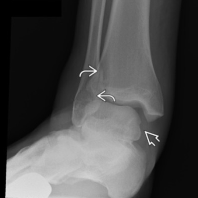 presumed with valgus stress, see opening of the medial joint clear space, **Deltoid ligament has to be completely ruptured to allow opening of the joint space