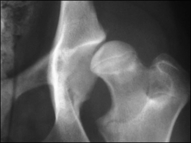 Hip dysplasia, cranial acetabulum edge increased opacity