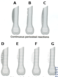 Label these periosteal reaction patterns