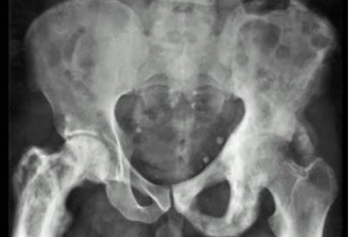 This is disordered bone metabolism with increased osteoclast activity and conpensatory increased osteoblast activity. This forms lots of woven bone