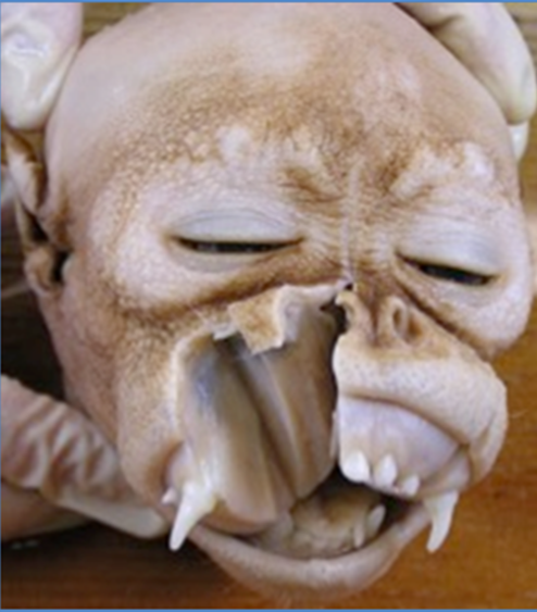 ingestion of several species of lupines, other alkaloid containing plants induce similar defects, and spontaneous genetic abnormalities
