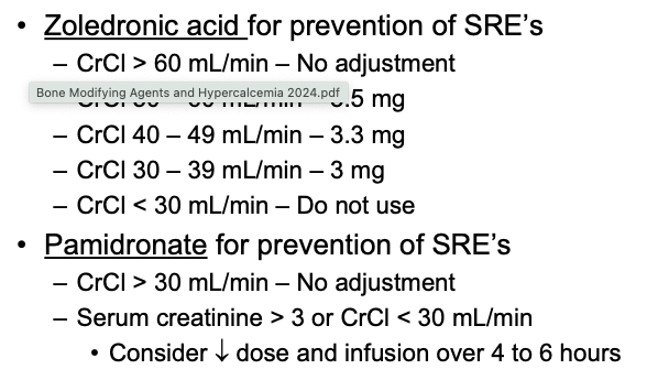 T or F: no renal adjustments are warranted if these agents (zoledronic acid and pamidronate) are for HCM