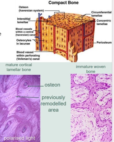 * haversian canal has blood vessels – bone laid down in concentric lamellae bone rings (by osteoblasts)