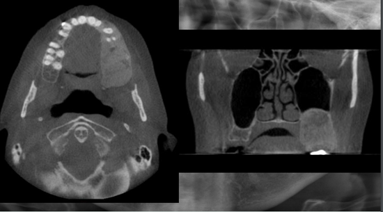 Upper left quadrant – alveolar crest drops down - FIBROUS DYSPLASIA