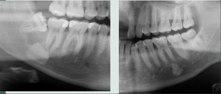 Indicates area of inflammation (non-vital tooth – XLA or RCT), its just dense bone – not radiopaque tumour.