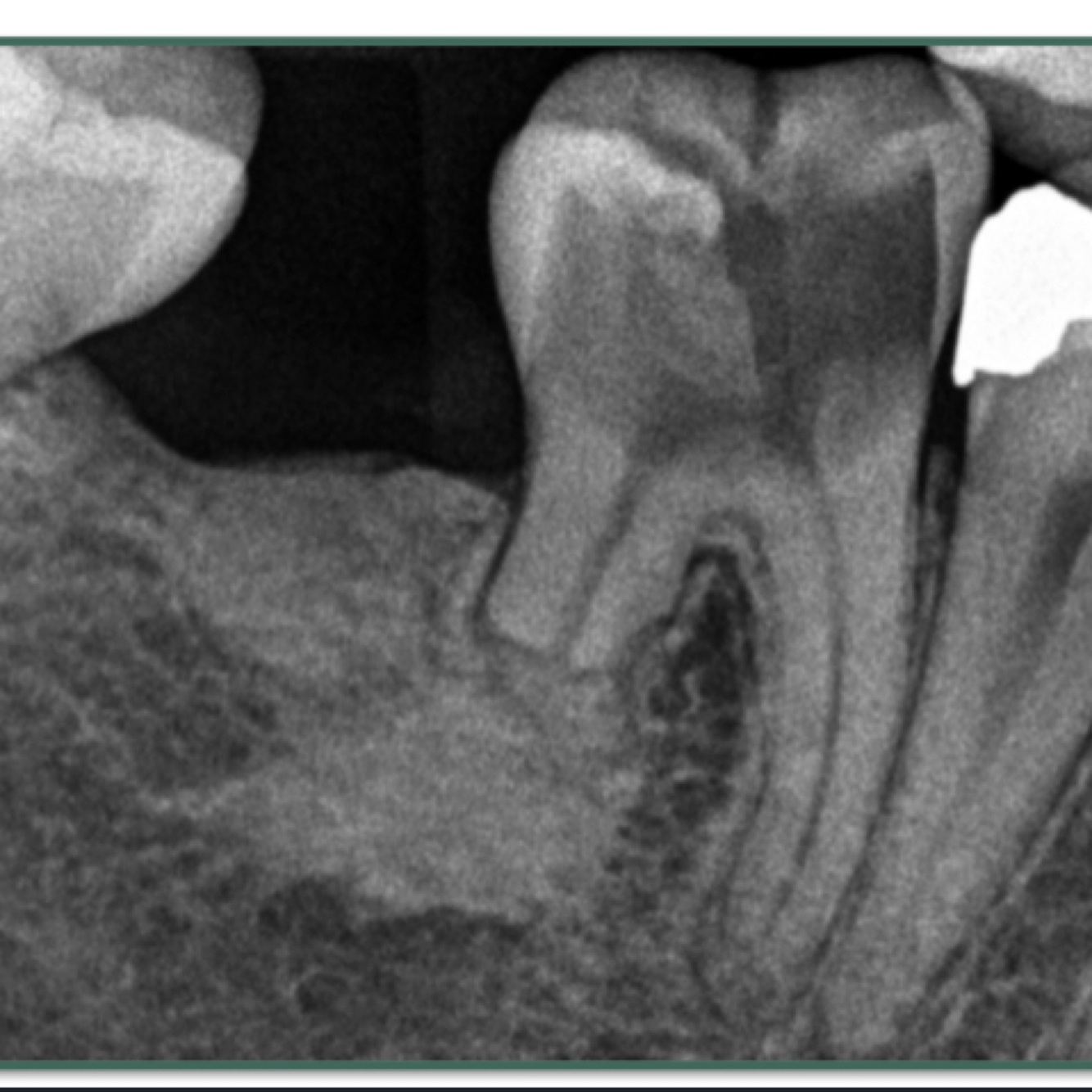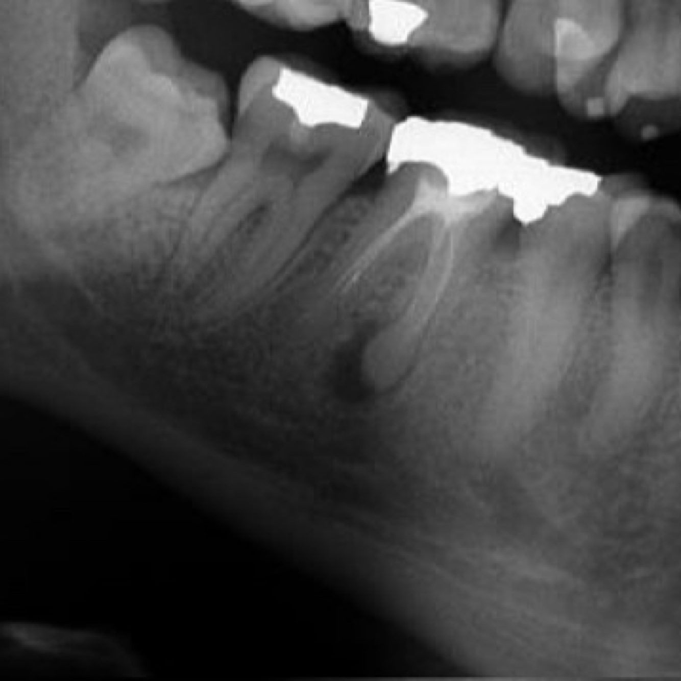 - mutliple lesions at apex of teeth, often mandibular incisors