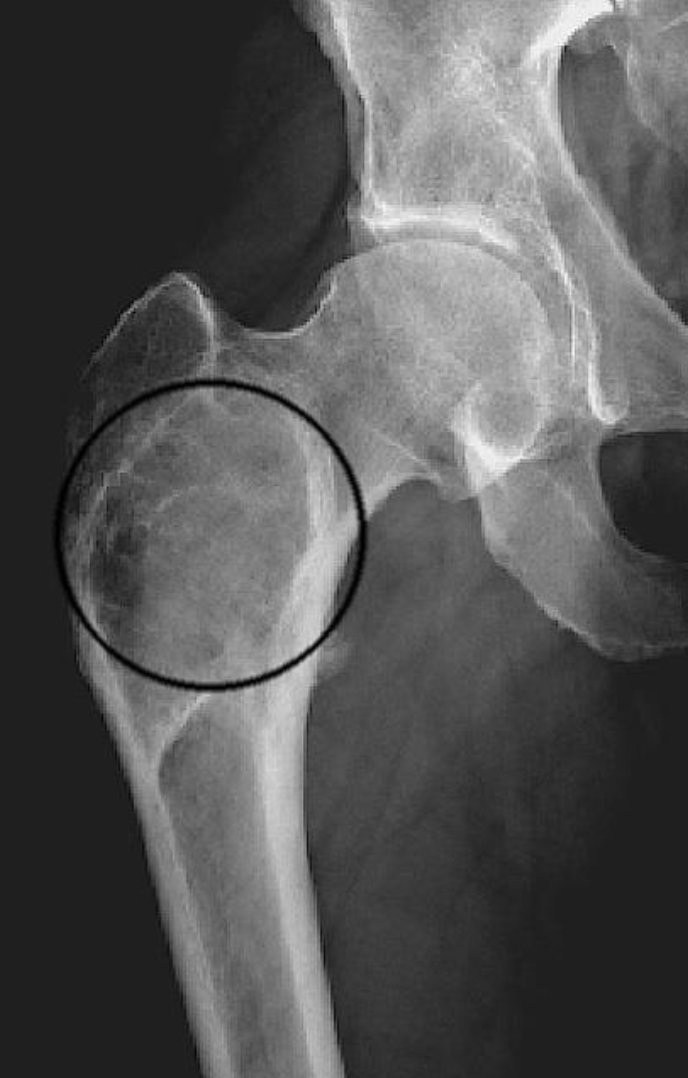 Lytic/lucent lesions right up to articular surface (usually non-invasive)