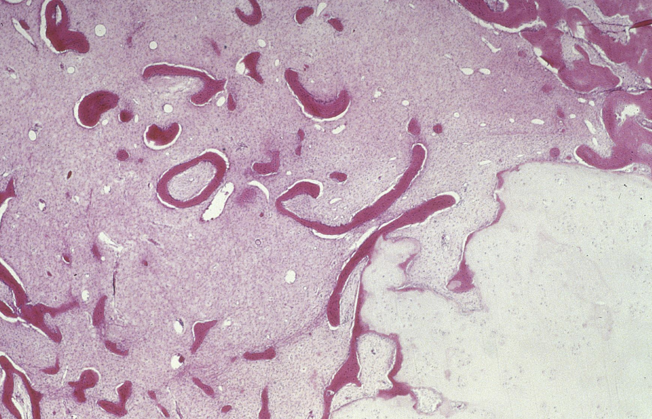 Genetic mutation causing fibrous, weak tissues being layed down instead of mature bone
