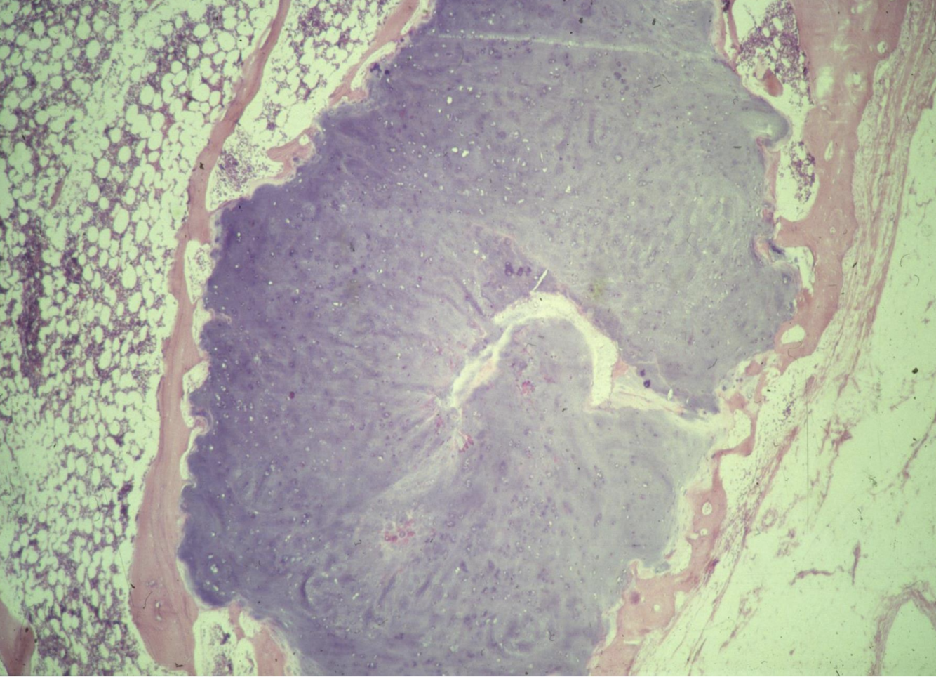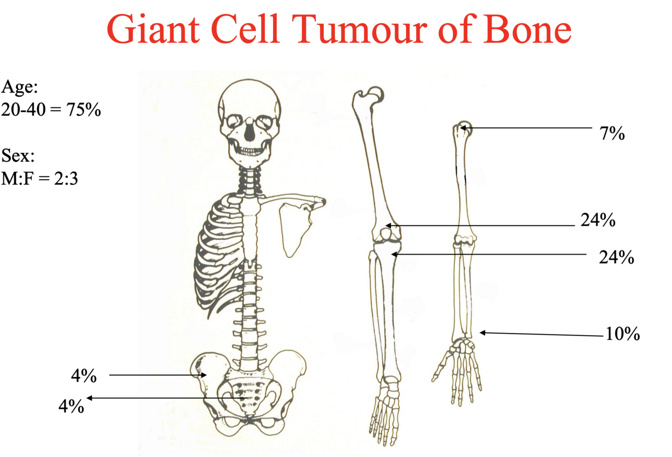 It is a borderline-malignant tumour (of bone, derived from the bone marrow) (usually locally agressive, but even though can metastasise, does not have to)