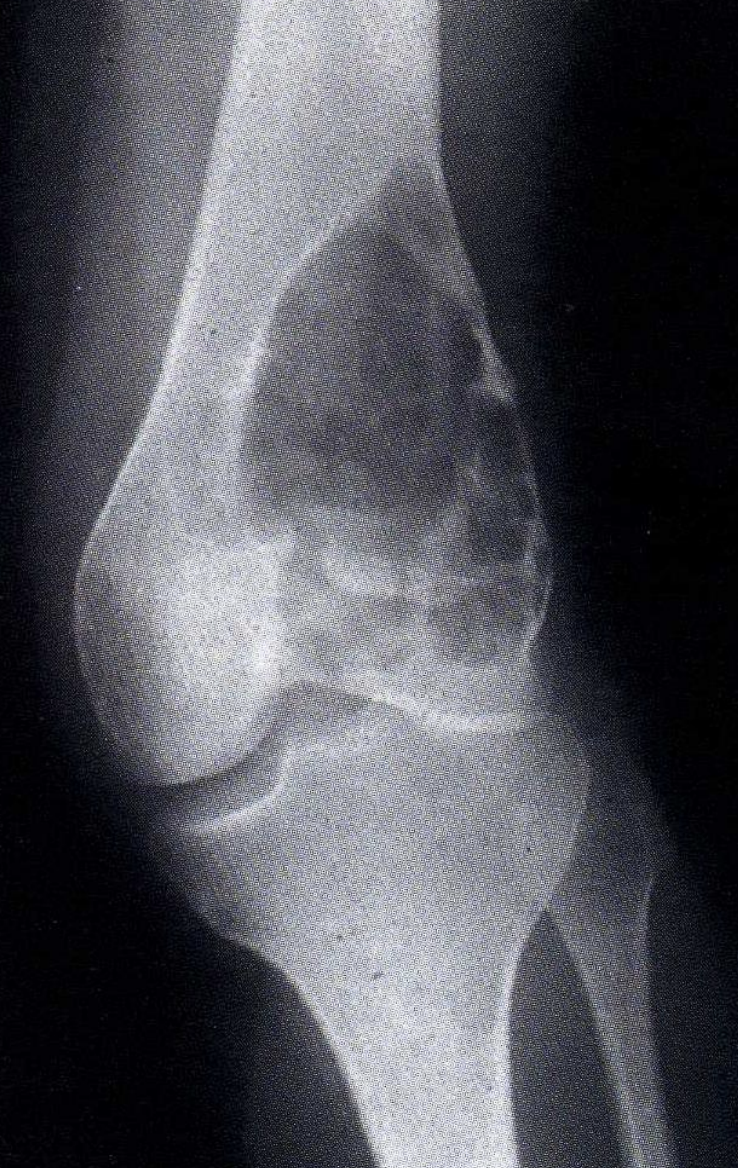 X-ray shows a soap bubble osteolysis and Shepherd’s crook deformity - what disease is it likely to be?