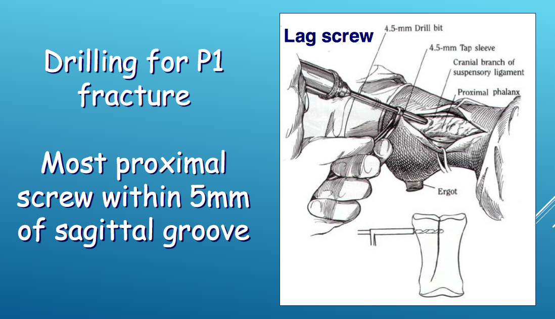 When drilling for P1 fractures, the most proximal screw must be within ____ of the sagittal groove