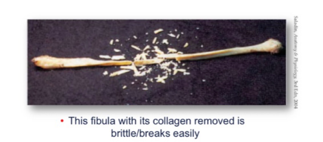 - Collagen (long fibres throughout bone)