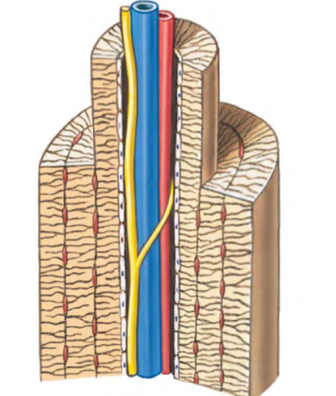 Contains blood vessels and nerves