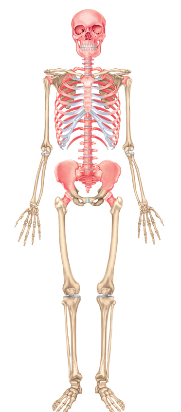 Found on Axial Skeleton, parts of pelvic girdle, promixal heads of humerus and femur