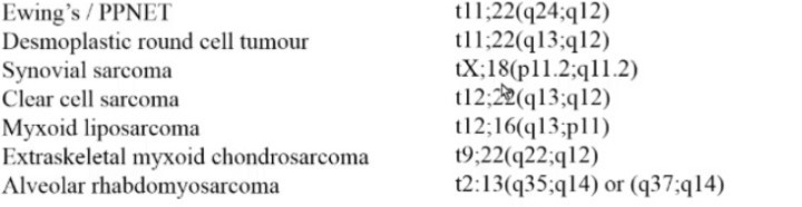 o Ewing’s sarcoma/PNET -> undifferentiated mesenchymal tumour