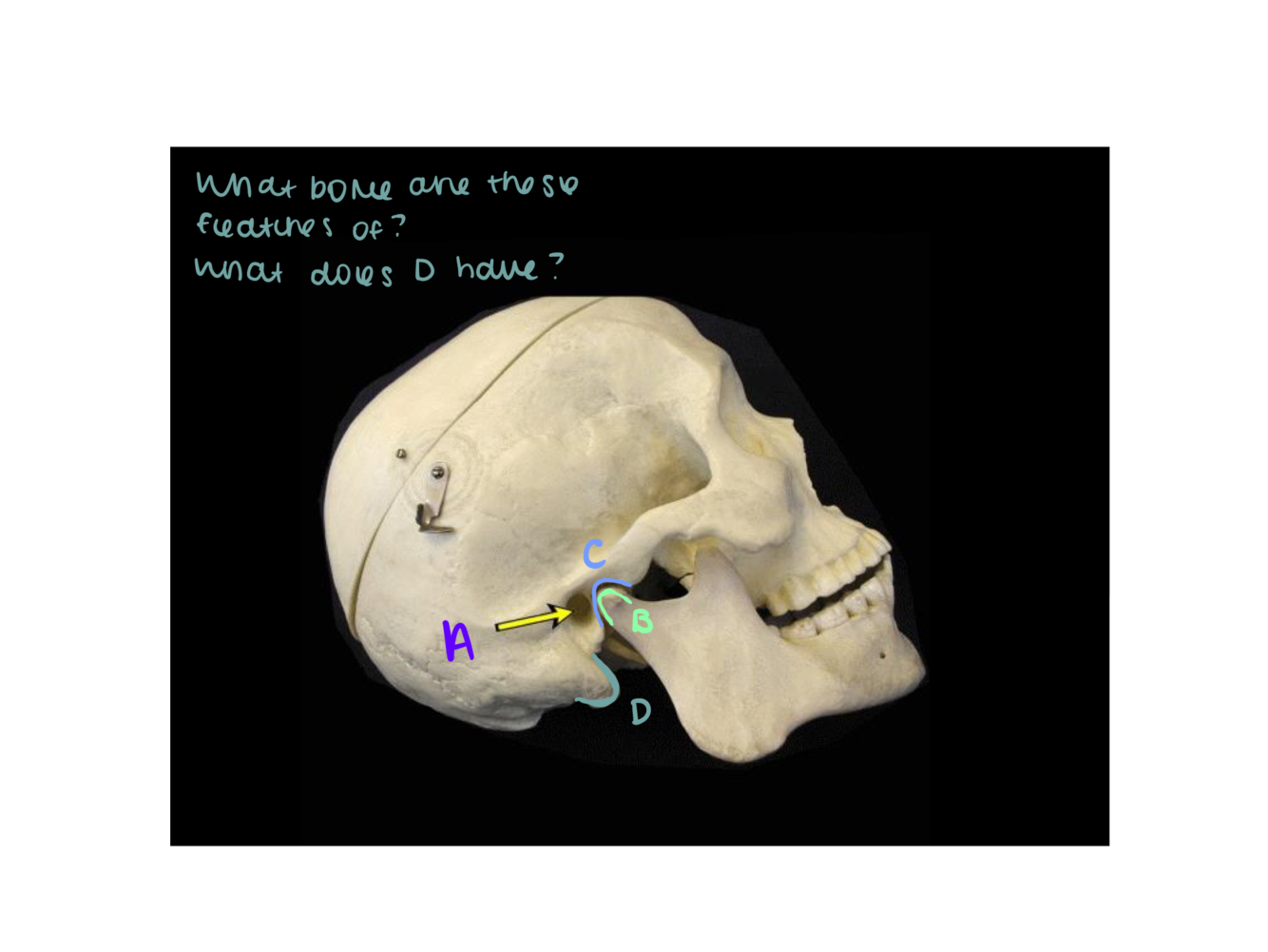 What is this bone? Name the alphabetized structures.