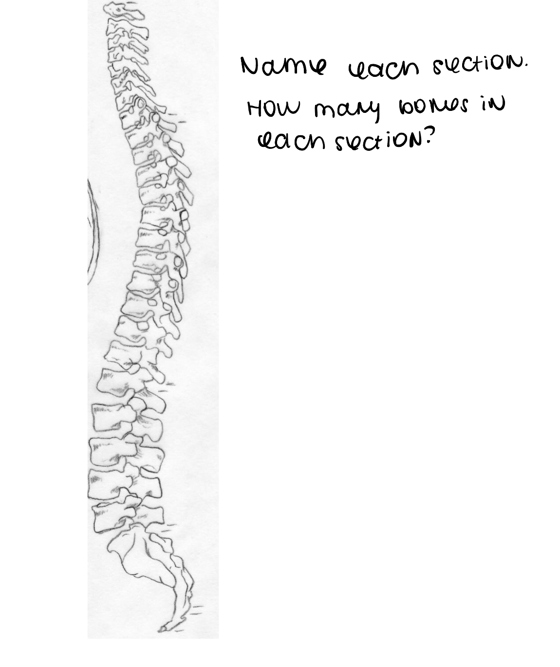 Name each section. How many bones are in each section?