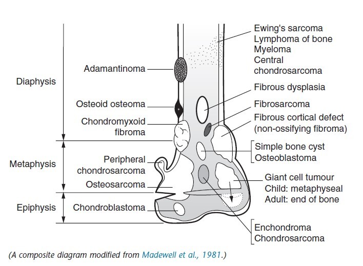 Sites of origin of primary bone neoplasm