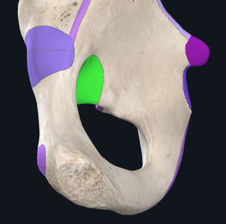 3) Pubis - inferiormedially to the ilium