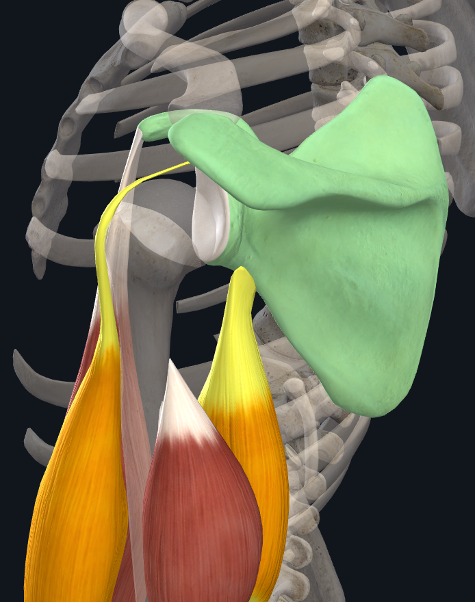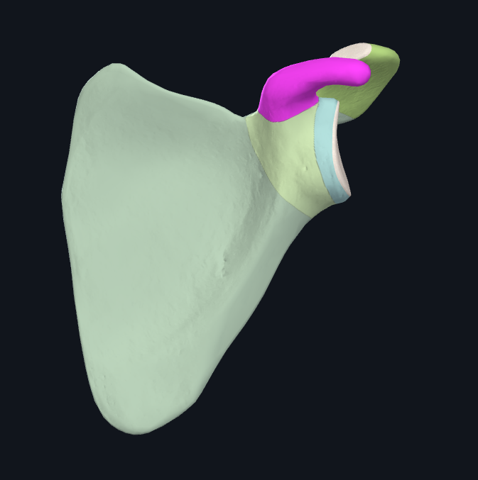 3) Infraglenoid tubercle - A roughening immediately inferior to the glenoid fossa. This is the place of attachment for the long head of the triceps brachii.
