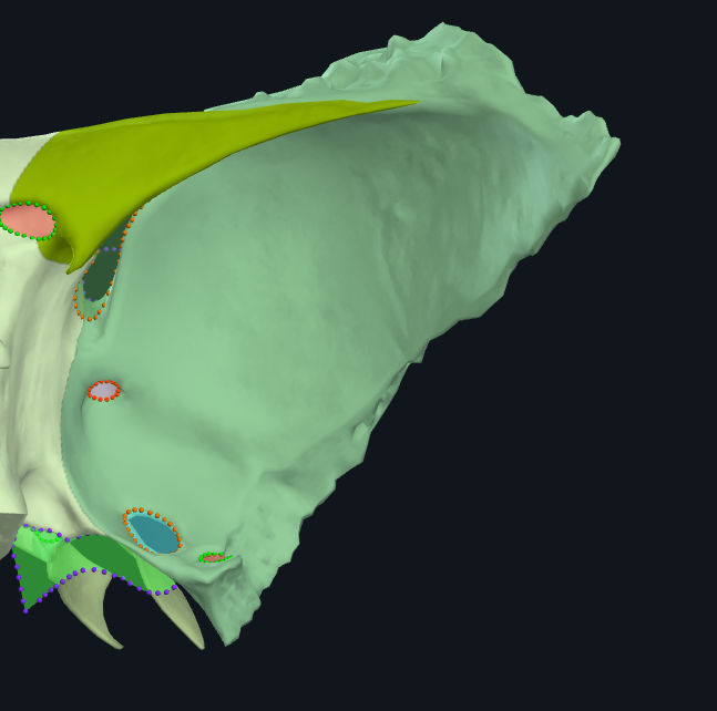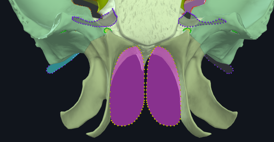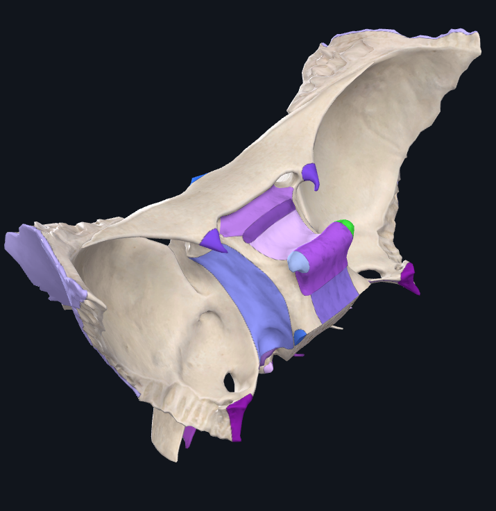 2) Lateral pterygoid plate - site of origin of the lateral and medial pterygoid muscles