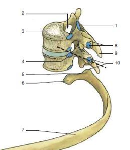 4, costovertebral articular facet and 10, costotransverse articular facet