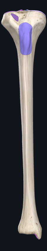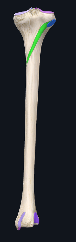 2) Posterior surface - marked proximally by a ridge of bone, known as the soleal line that extends inferomedially, and then blends with the medial border. There is usually a artery nutrient that runs proximal to this line.