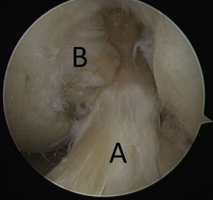 into the triangle formed by ACL, lateral meniscus, lateral femur