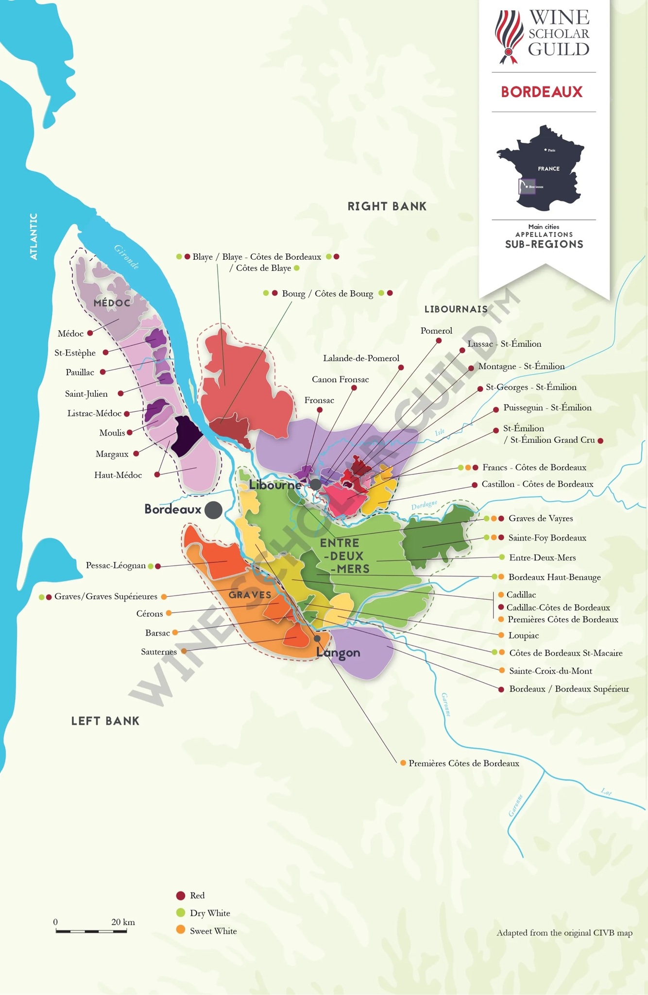 on the south-west to Entre-Deux-Mers and east of Graves