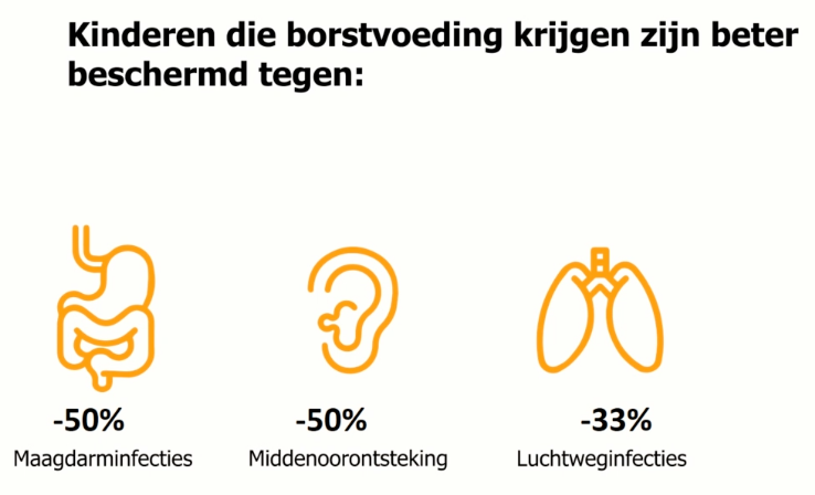 Welke en hoeveel % minder infecties door borstvoeding geven