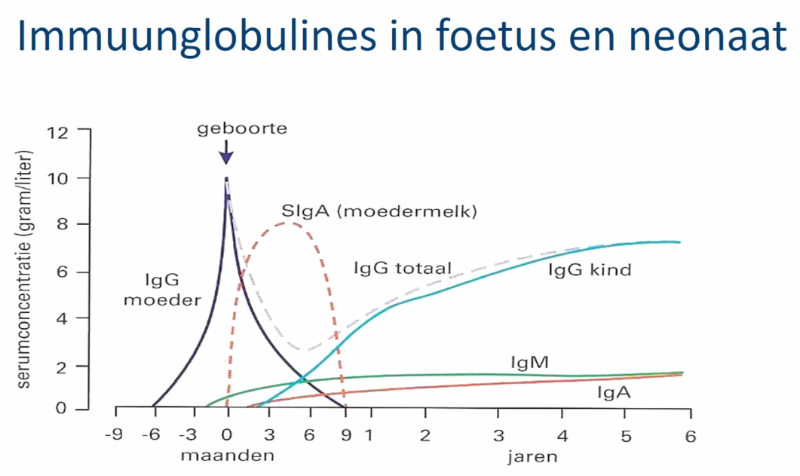 Igg kan eerste maanden met igg van moeder doen, daarna duurt het ff voordat kind het weer op peil heeft met eigen aanmaak