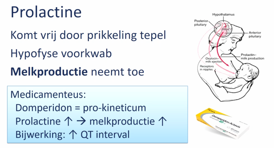 Door prikkeling tepel komt dit vrij uit de hypofyse voorkwab waardoor de melkproductie toeneemt