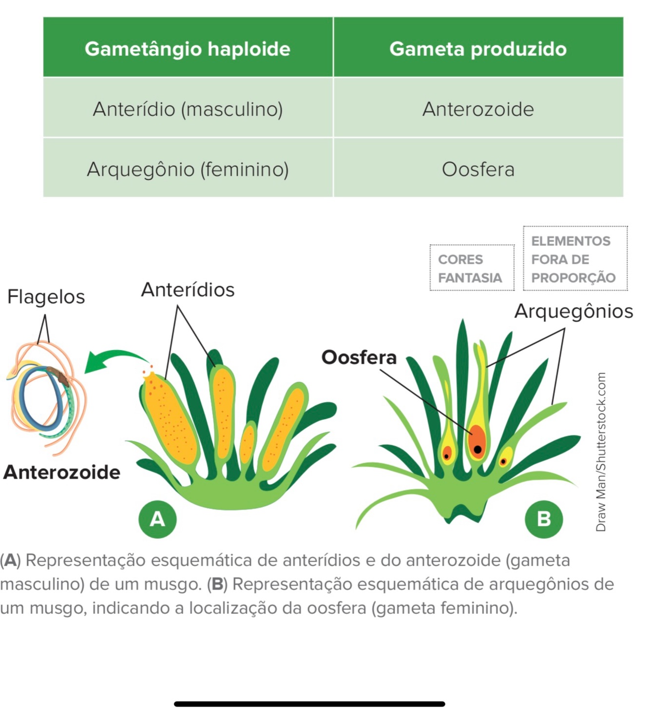Quais são os gametas e gametângios( órgão/ estrutura reprodutora) das plantas?