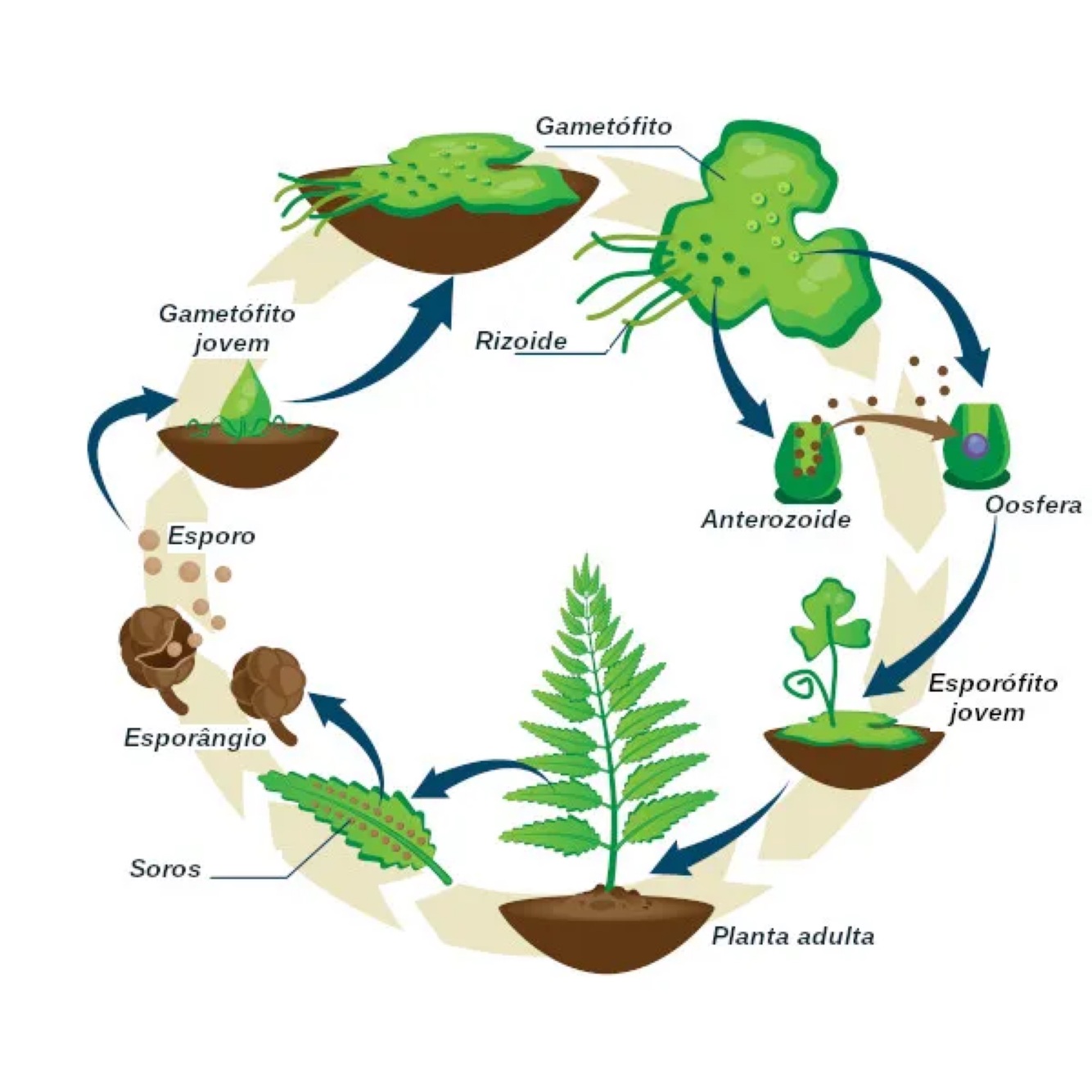 Como se dá o ciclo de vida de uma samambaia( pteridófitas)?